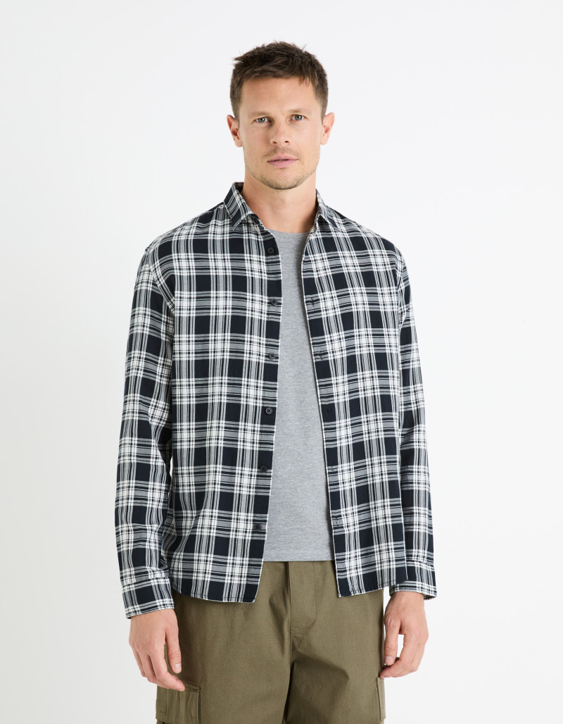 Bavlněná košile s kostkovaným vzorem. Moderní krátký límeček. Zapínání na knoflíčky. Dlouhé rukávy s manžetou. Zaoblený spodní lem. Střih regular.