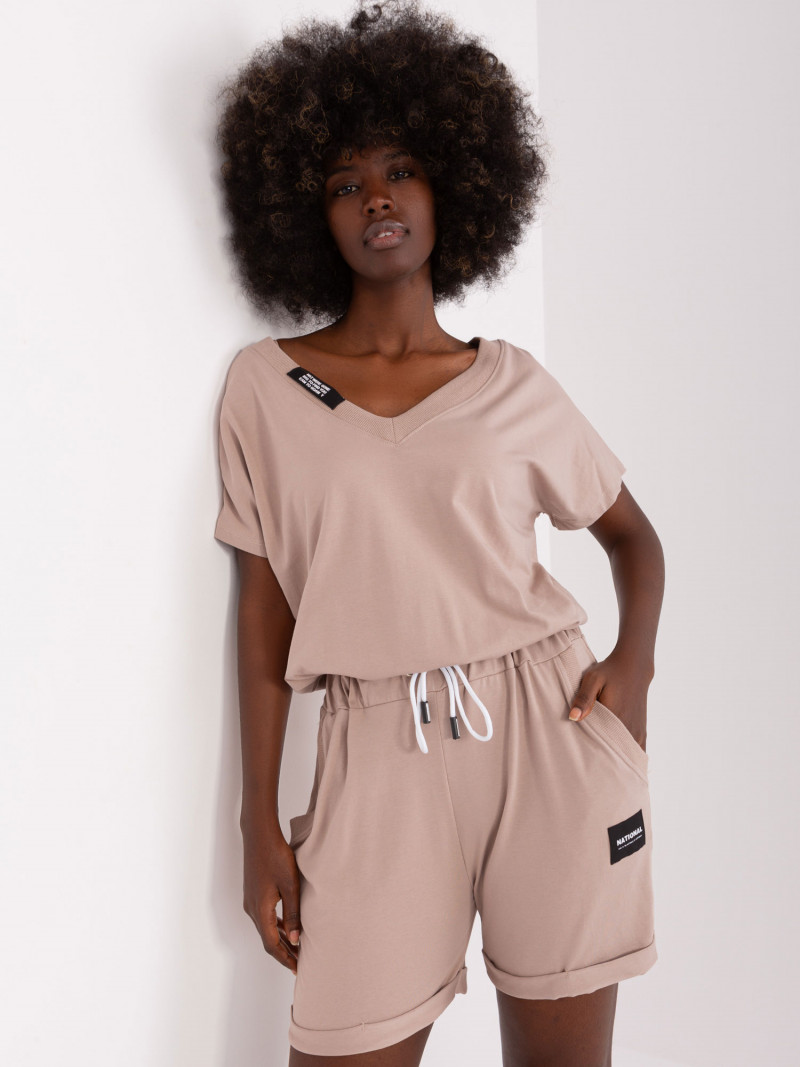 Béžová bavlněná kombinéza s výstřihem do V.