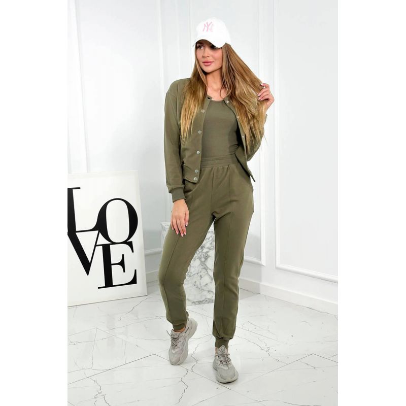 Turecký set 3v1 je mimořádně stylový a praktický set, který dokonale spojuje pohodlí s módou. Tato sada sestávající z popper mikiny, žebrovaného topu a kalhot do kapsy je snem každého, kdo hledá všestranné a atraktivní oblečení. Mikina s druky je ústředním prvkem kompletu. Její střih a netradiční design vytváří jedinečný charakter, který lze přizpůsobit různým příležitostem. Žebrovaný top, který je dalším prvkem kompletu, mu dodává trochu sportovního charakteru. Zajímavé vzory proužků mu dodávají jedinečné kouzlo a vyčnívají z ostatních oděvů. Top lze nosit samostatně nebo jako vrstvu pod mikinu, což umožňuje vytvářet různé styly. Kalhoty s kapsami doplňují celek, dodávají praktičnost a funkčnost. Kapsy jsou ideální pro uložení malých předmětů, jako jsou klíče nebo telefon. Pohodlný střih kalhot z nich dělá perfektní volbu jak na každodenní procházky, tak na setkání s přáteli. Turecká sada 3 v 1 je návrhem pro lidi, kteří si cení pohodlí a zároveň se nechtějí vzdát módního vzhledu. Tato sada dokonale zapadá do aktuálních módních trendů a umožňuje vytvářet originální stylizace pro každou příležitost. Velikost je univerzální a bude vhodná pro dámy ve velikosti S, M nebo L.