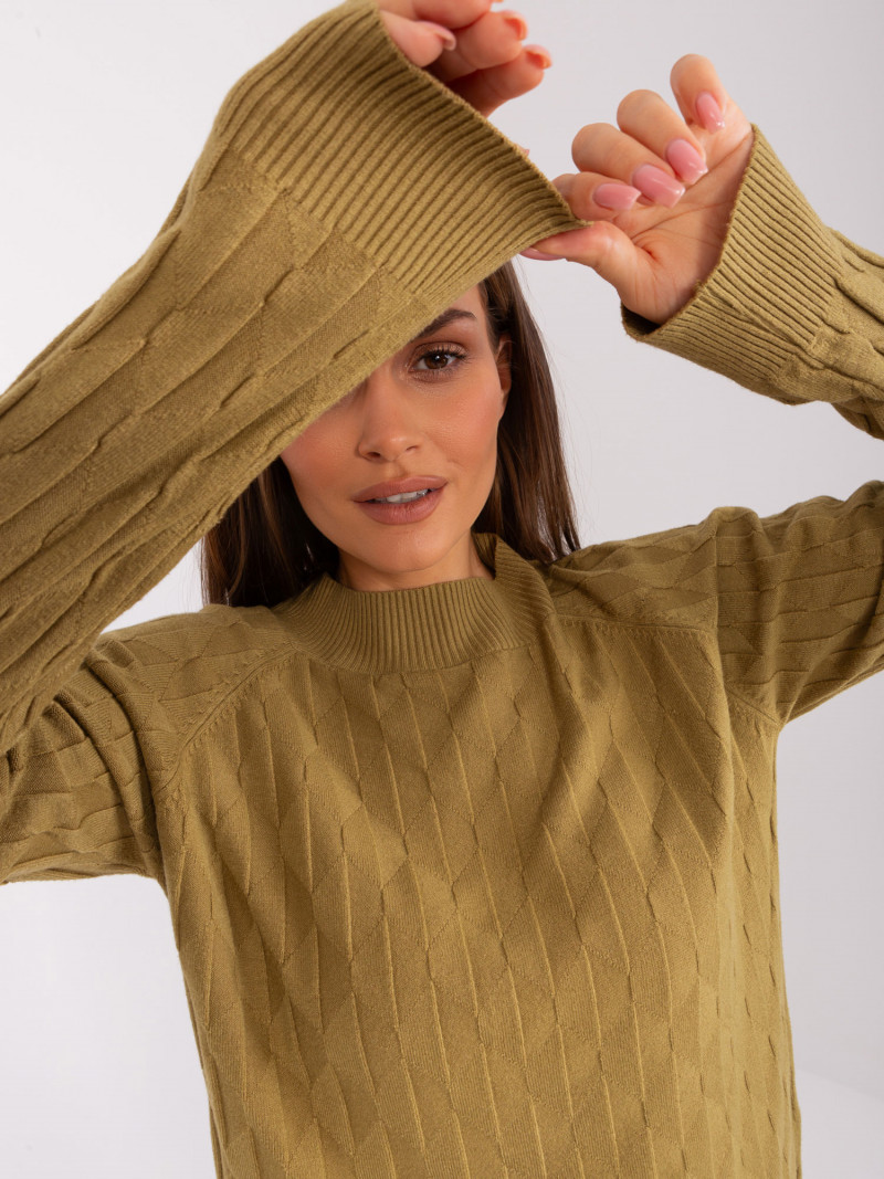 Rozměry svetru v jedné velikosti měřeno naplocho: šířka v podpaží - 60 cm, délka rukávu - 67 cm, celková délka - 65 cm.