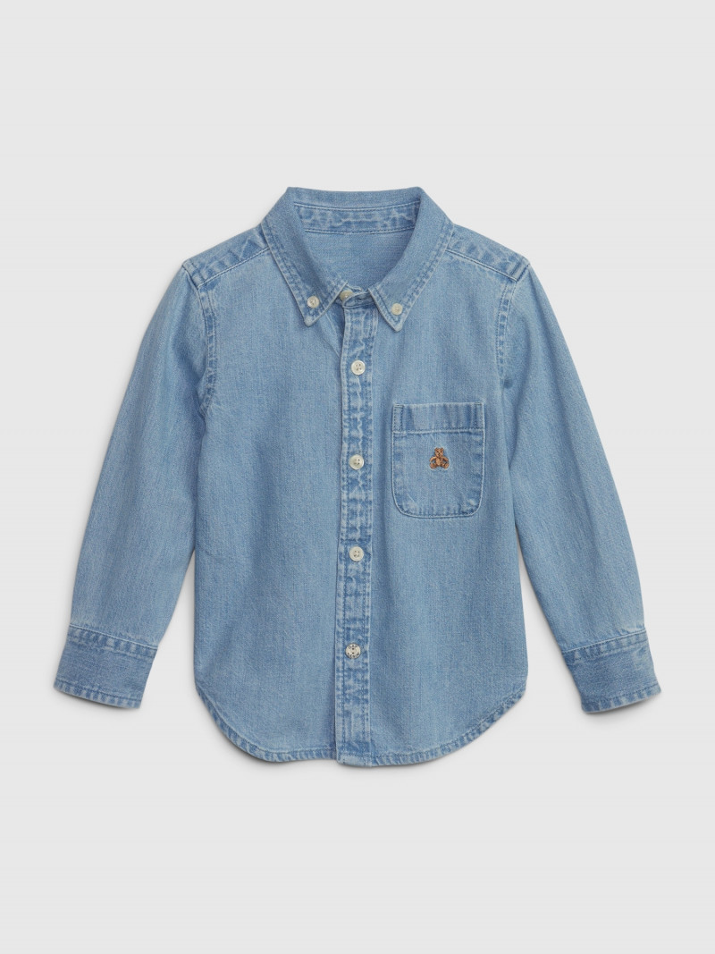 Dětská košile s dlouhým rukávem.Na knoflíčky a s klasickým límečkem.Na přední kapsičce vyšívaný Brannan bear.Tento produkt je součástí našeho programu Washwell™ šetřícího vodu. Ve srovnání s běžnými způsoby praní, Washwell™ ušetřil od roku 2016 miliony litrů vody. Více se dozvíte na Gap for Good.