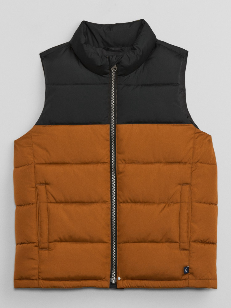 Dětská prošívaná vesta.Zapínání na zip.U krku stojáček.Šikmé boční kapsy.