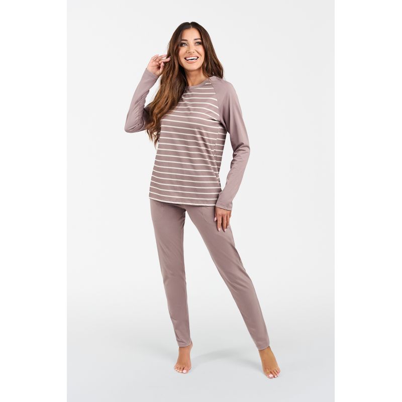 Dámské pyžamo Oda dlouhé rukávy, dlouhé kalhoty - potisk cappuccino/cappuccino