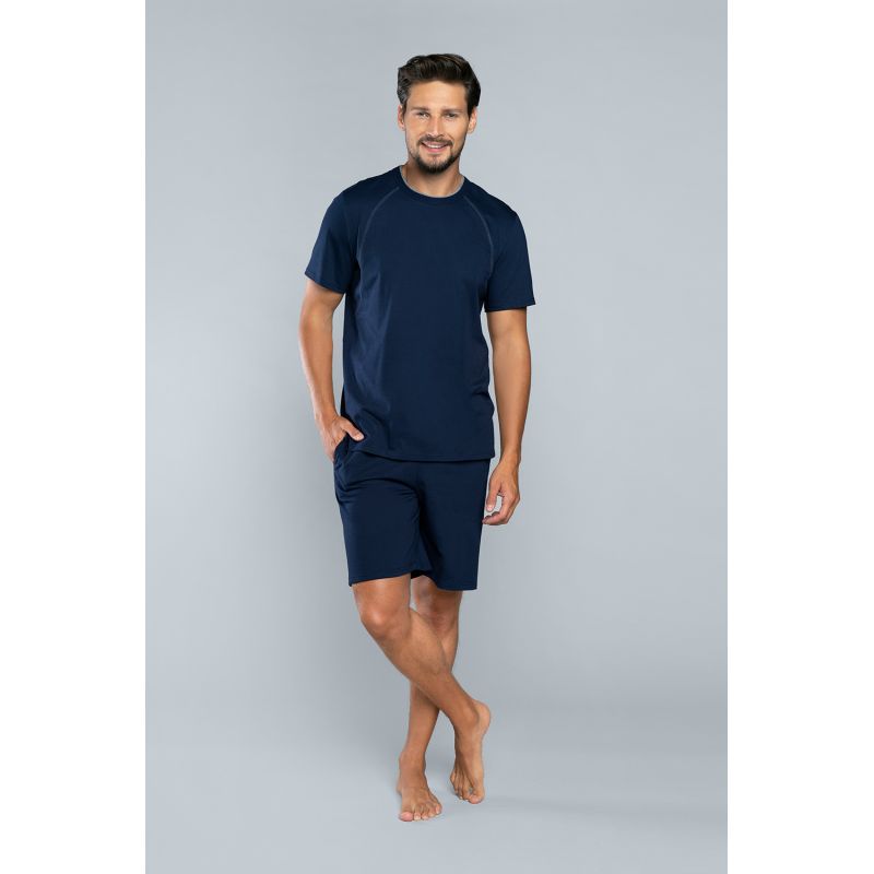 Pánské pyžamo Niko, krátký rukáv, 1/2 kalhoty - tmavě modrá