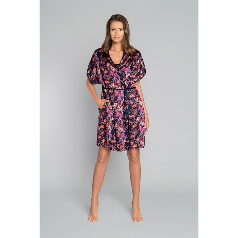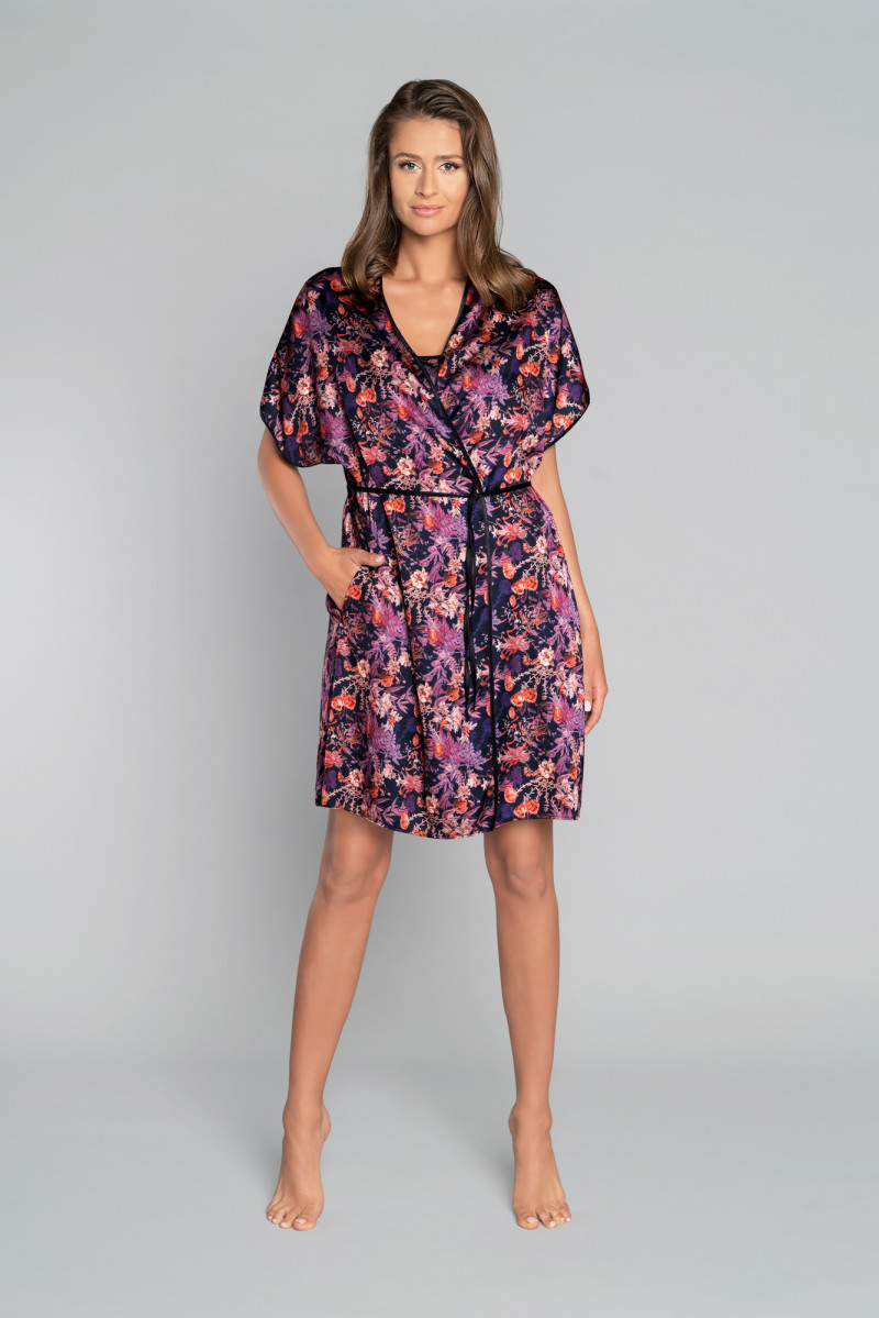 Vzdušný, okouzlující župan Tibesti, vyrobený z jemného a na dotek mimořádně příjemného saténu. Krásný květinový potisk v odstínech fialové dodá kouzlo a krásně zvýrazní vaši krásu.