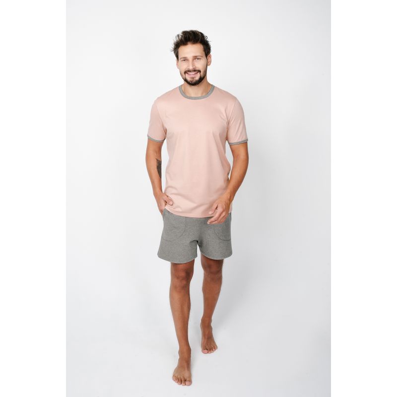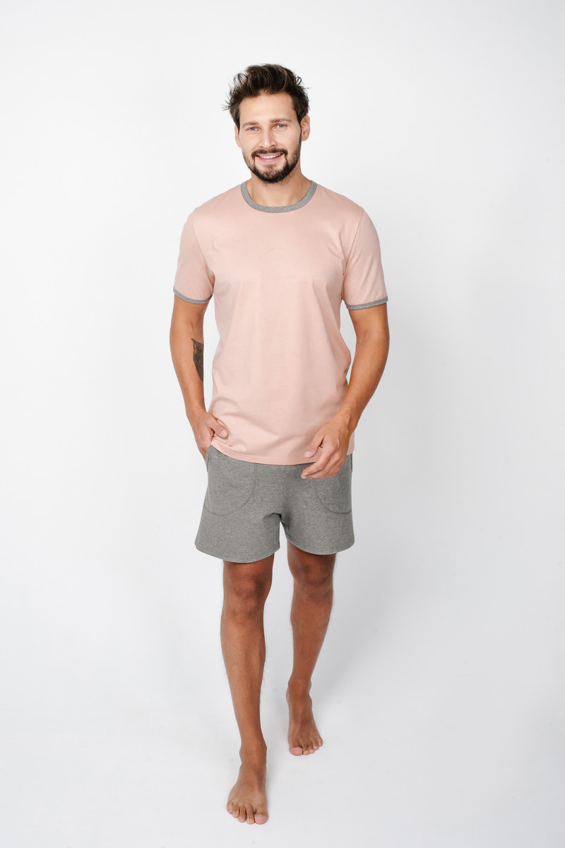 Pyžamo Nikodem je funkční klasika v pastelových odstínech. Veselé barvy v kombinaci s tlumenou šedou dělají pyžamo stylové a noblesní. Ozdobné zakončení rukávů a výstřihu odkazuje na spodní část soupravy. Jedinečnou předností modelu NIKODEM jsou kapsy u kraťasů. Pánské pyžamo je vyrobeno z žerzejové bavlny, která je považována za vysoce kvalitní materiál. Přirozenost, měkká struktura a jemné přilnutí k tělu učiní muže ochotné používat tento set nejen na spaní. Charakteristické vlastnosti: • 100% bavlněný žerzej • Volný střih, nekompresivní elastický pas • Kapsy.