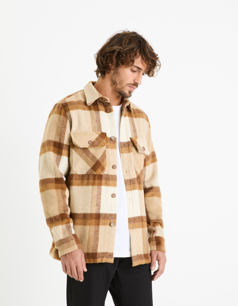 Kostkovaná košile se dvěma náprsními kapsami s klopami. S dlouhým rukávem, límečkem a zapínáním na knoflíky. Velmi příjemný a hřejivý materiál s příměsí vlny.