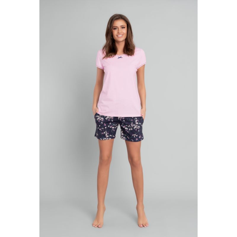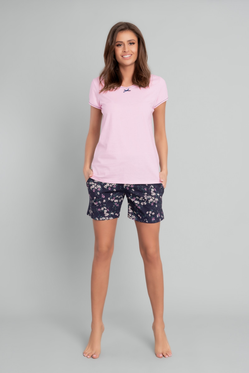 Dámské pyžamo Celestina, krátký rukáv, krátké nohavice - růžová/potisk