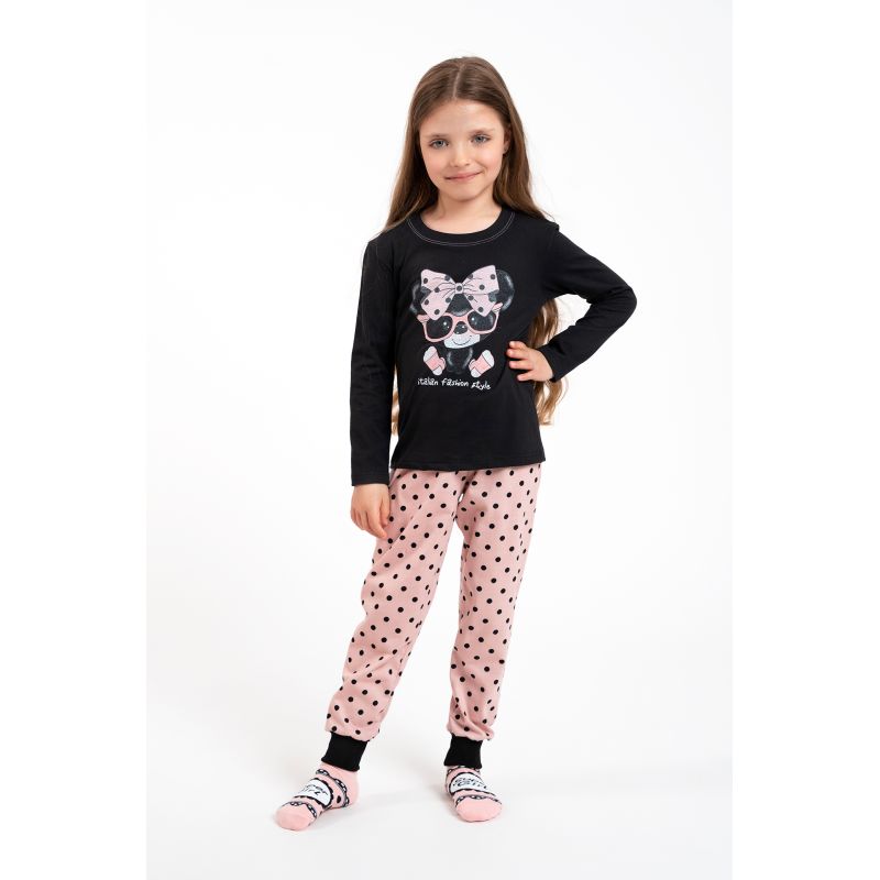 Dívčí pyžamo Bonilla dlouhé rukávy, dlouhé nohavice - černá/potisk