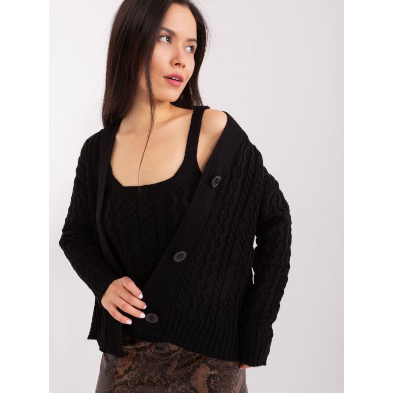 Černá dvoudílná souprava s copánky .