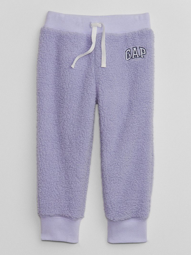 Dětské tepláky s logem.Měkký umělý beránek.Pružný pas se stahovací šňůrkou.Dlouhé nohavice s náplety.