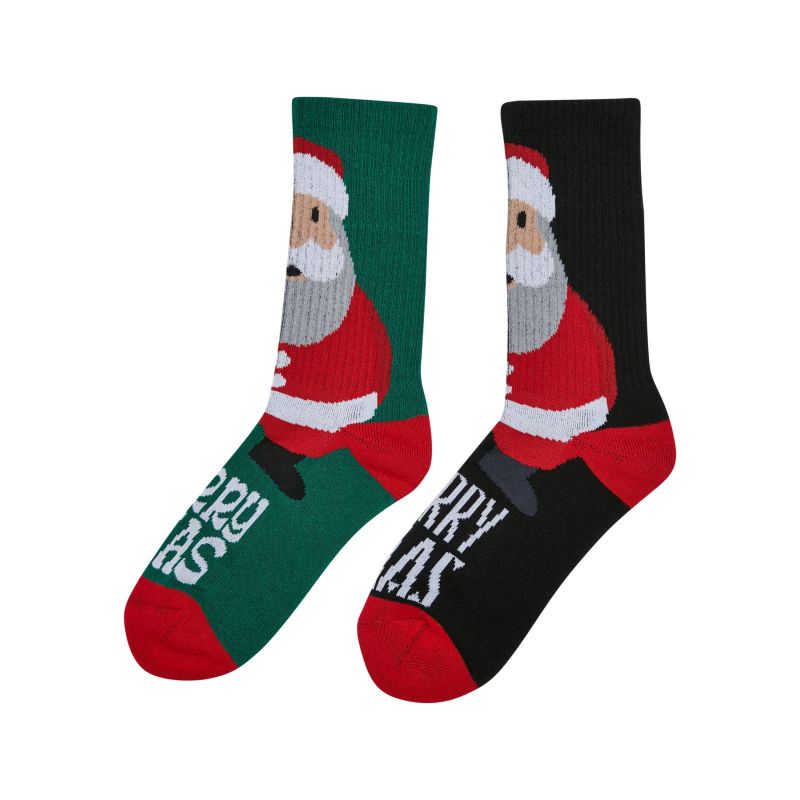 Tato dvojitá sada ponožek zdůrazňuje sváteční náladu prostřednictvím nápadných vánočních motivů. Velký Santa Claus zdobí přední část dříků vysokých po lýtka. Na nártu je napsáno "Merry Christmas". Oblasti špičky a paty jsou barevně zvýrazněny, komfort nošení zajišťuje vysoký žebrovaný střih s úzkými manžetami a použitý materiál mix bavlny, polyesteru a elastanu. Ponožky jsou dostupné ve čtyřech různých velikostech.