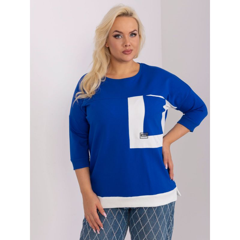 Kobaltově modrá bavlněná halenka větší velikosti s 3/4 rukávy