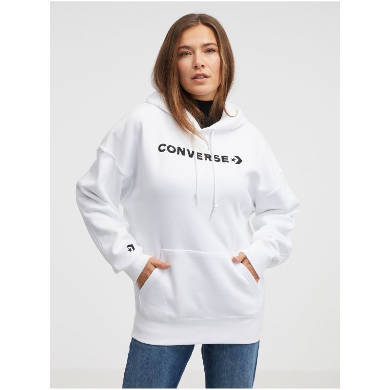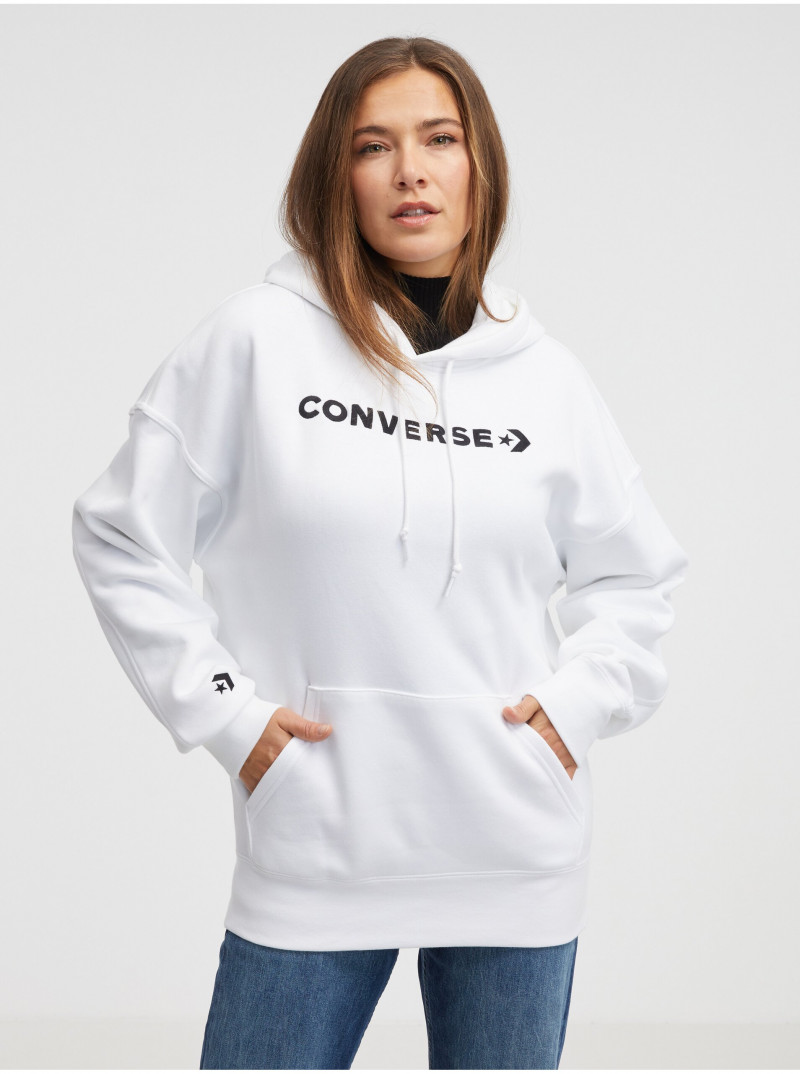 Bílá dámská mikina s kapucí Converse Embroidered Wordmark - Dámské
