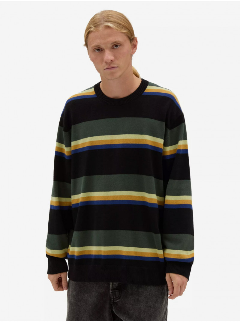 Zeleno-černý pánský pruhovaný svetr VANS Tacuba Stripe Crew - Pánské