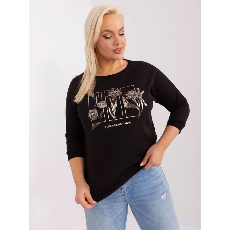 Modelka má na sobě jednu velikost. Rozměry modelky: výška 172 cm, prsa 103 cm, pas 73 cm, boky 103 cm.   Rozměry halenky jedné velikosti měřeny naplocho: šířka v podpaží - 64 cm, celková délka - 59 cm, délka rukávu - 42 cm..