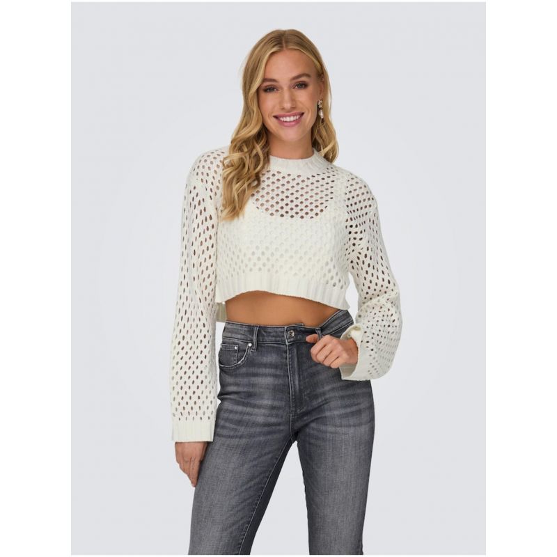 Krémový dámský děrovaný krátký svetr ONLY Smilla - Dámské