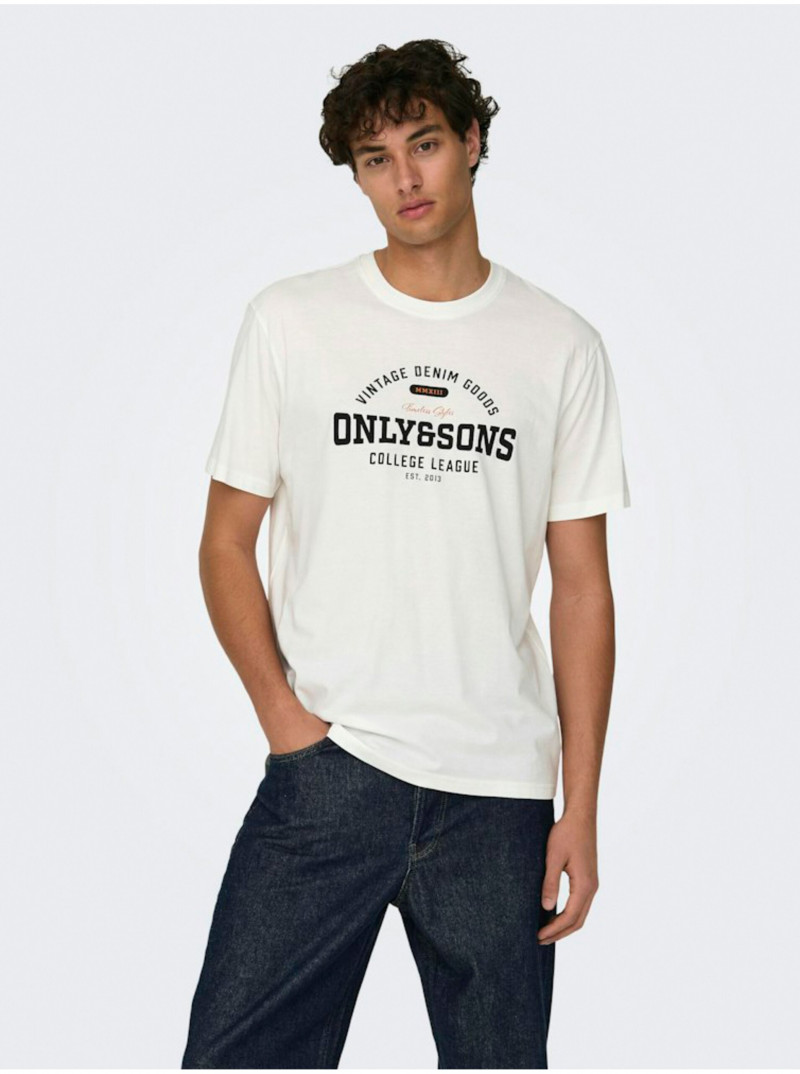Bílé pánské tričko ONLY & SONS Lenny Life - Pánské