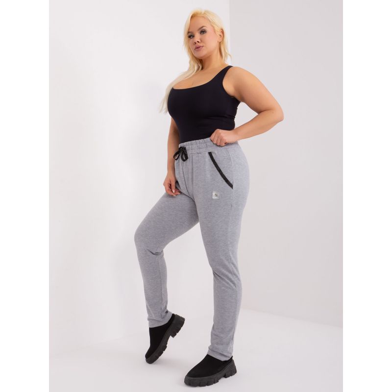 Šedé melanžové kalhoty větší velikosti s nášivkou
