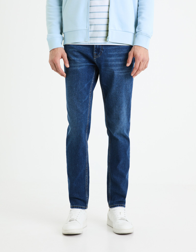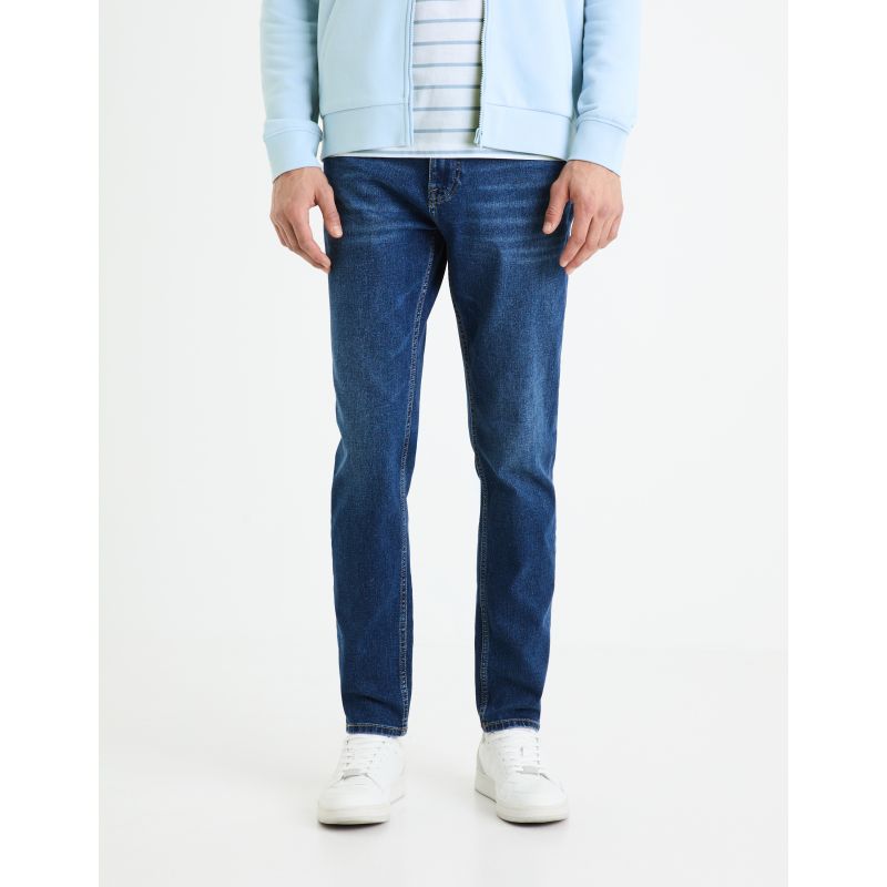 Džíny slim se hodí k tričku a sportovní bundě nebo mikině. Tyto džíny mají 5 kapes a slim střih, který patří mezi pohodlné a oblíbené. Jsou vyrobeny z bavlny a elastanu. Zapínají se na zip a knoflík a mají poutka na pásek a ozdobné prošití.