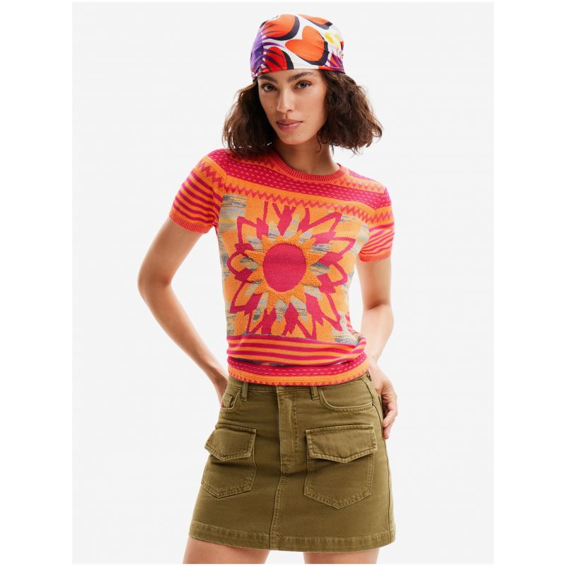 Oranžové dámské úpletové tričko Desigual Sun Blue - Dámské