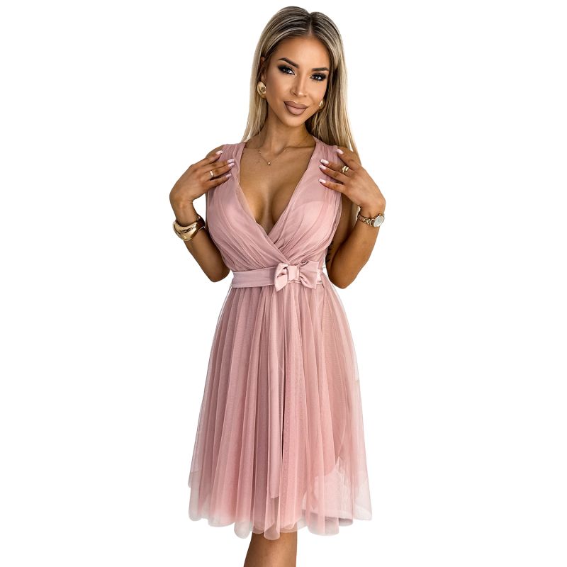 Dámské tylové šaty s výstřihem a mašlí Numoco