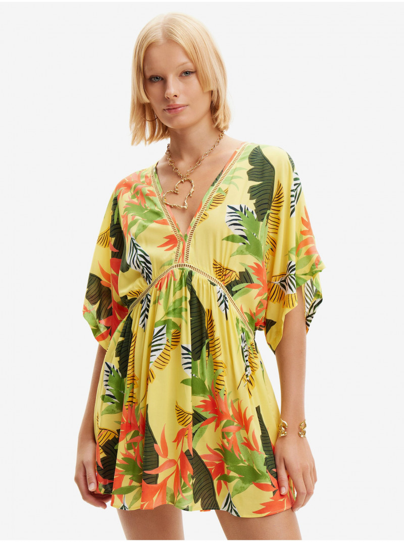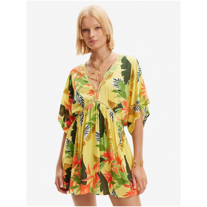 Žluté dámské květované plážové šaty Desigual Top Tropical Party - Dámské