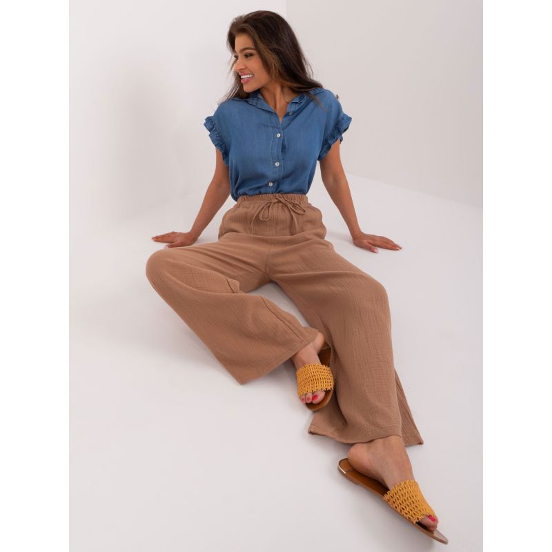 Světle hnědé dámské látkové kalhoty s kapsami