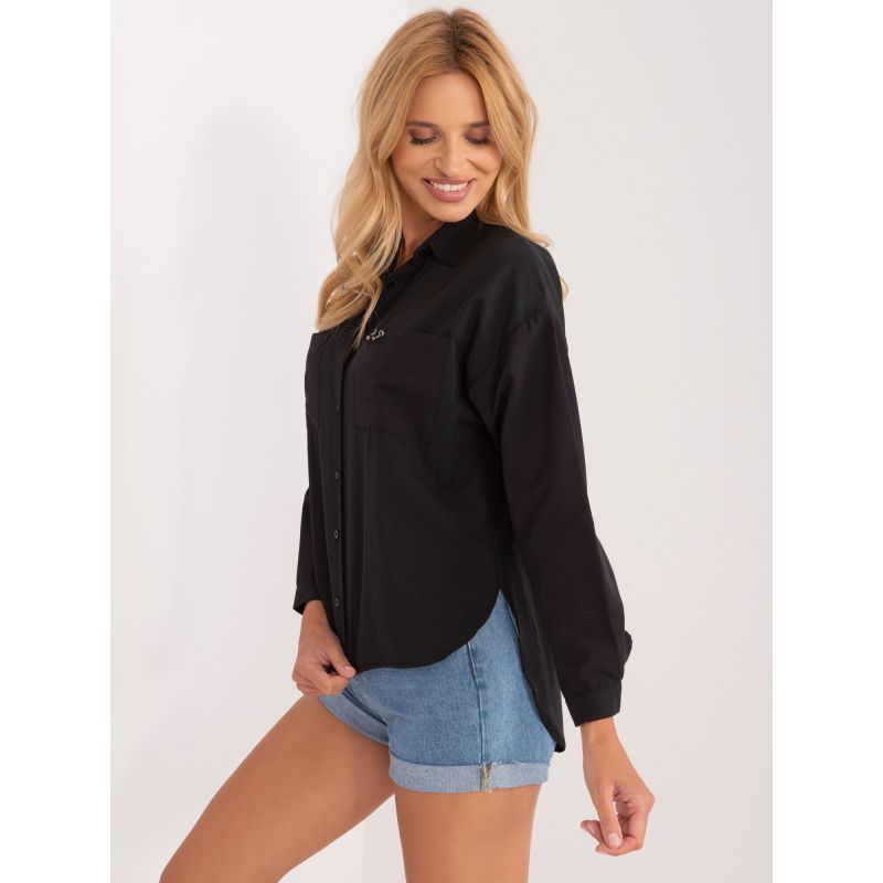 Modelka má na sobě velikost S. Míry modelky: výška 175 cm, prsa 90 cm, pas 66 cm, boky 94 cm.   Rozměry košile velikosti S, měřeno naplocho: šířka v podpaží - 55 cm, délka rukávu - 54 cm, celková délka (vpředu) - 50 cm, celková délka (vzadu) - 66 cm.
