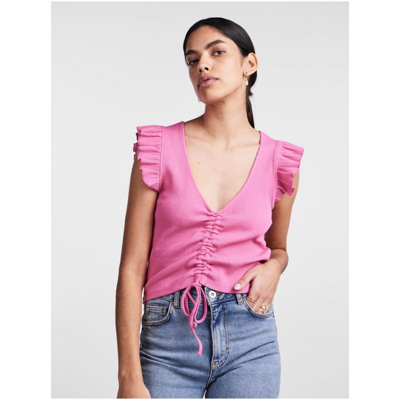 Růžové dámské crop top tričko Pieces Tegan - Dámské