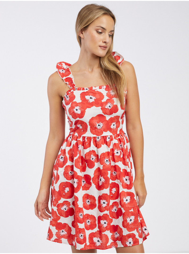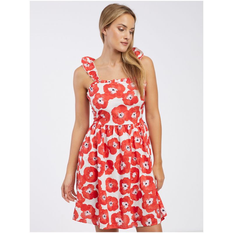Bílo-červené dámské květované šaty Pieces Halia - Dámské