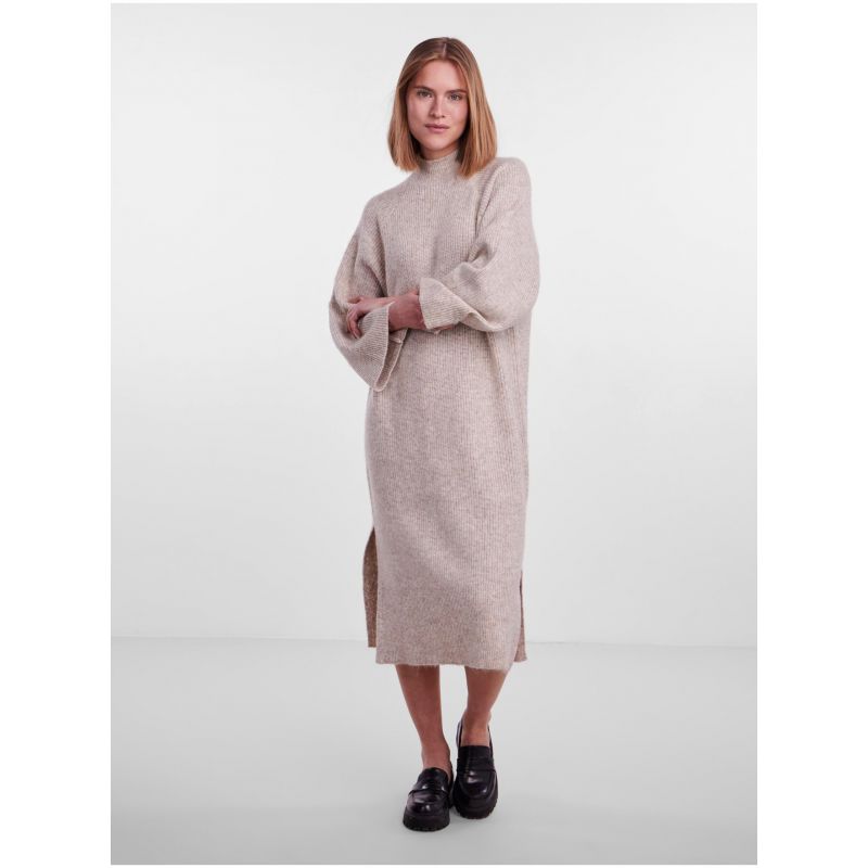 Béžové dámské svetrové oversize midišaty Pieces Jade - Dámské