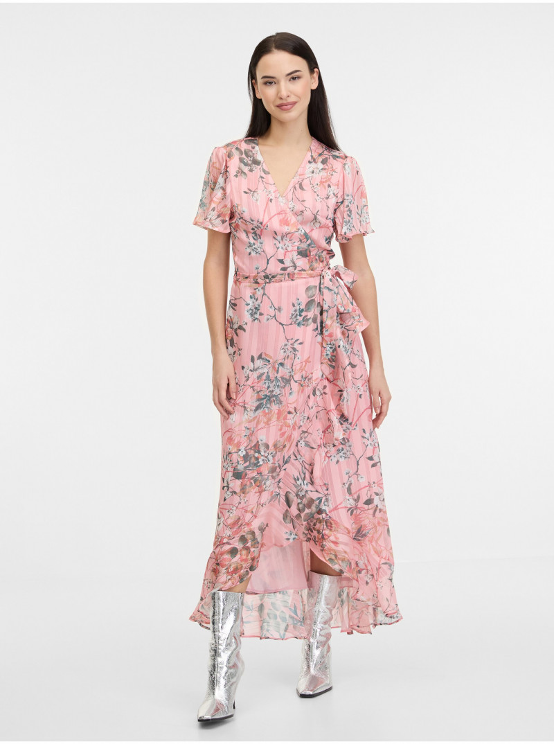 Růžové dámské květované zavinovací šaty Guess New Juna - Dámské