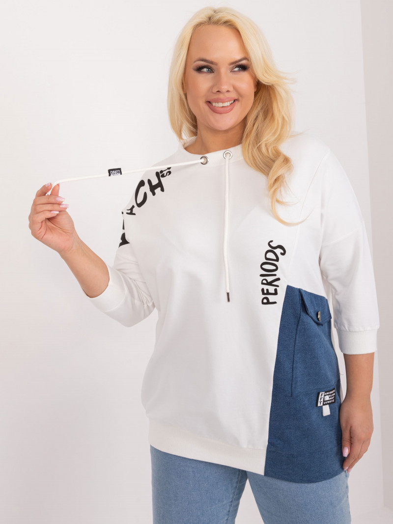 Modelka má na sobě univerzální velikost. Rozměry modelky: výška 172 cm, prsa 103 cm, pas 73 cm, boky 103 cm.   Rozměry halenky jedné velikosti měřeny naplocho: šířka v podpaží - 68 cm, délka rukávu - 42 cm, celková délka - 72 cm.