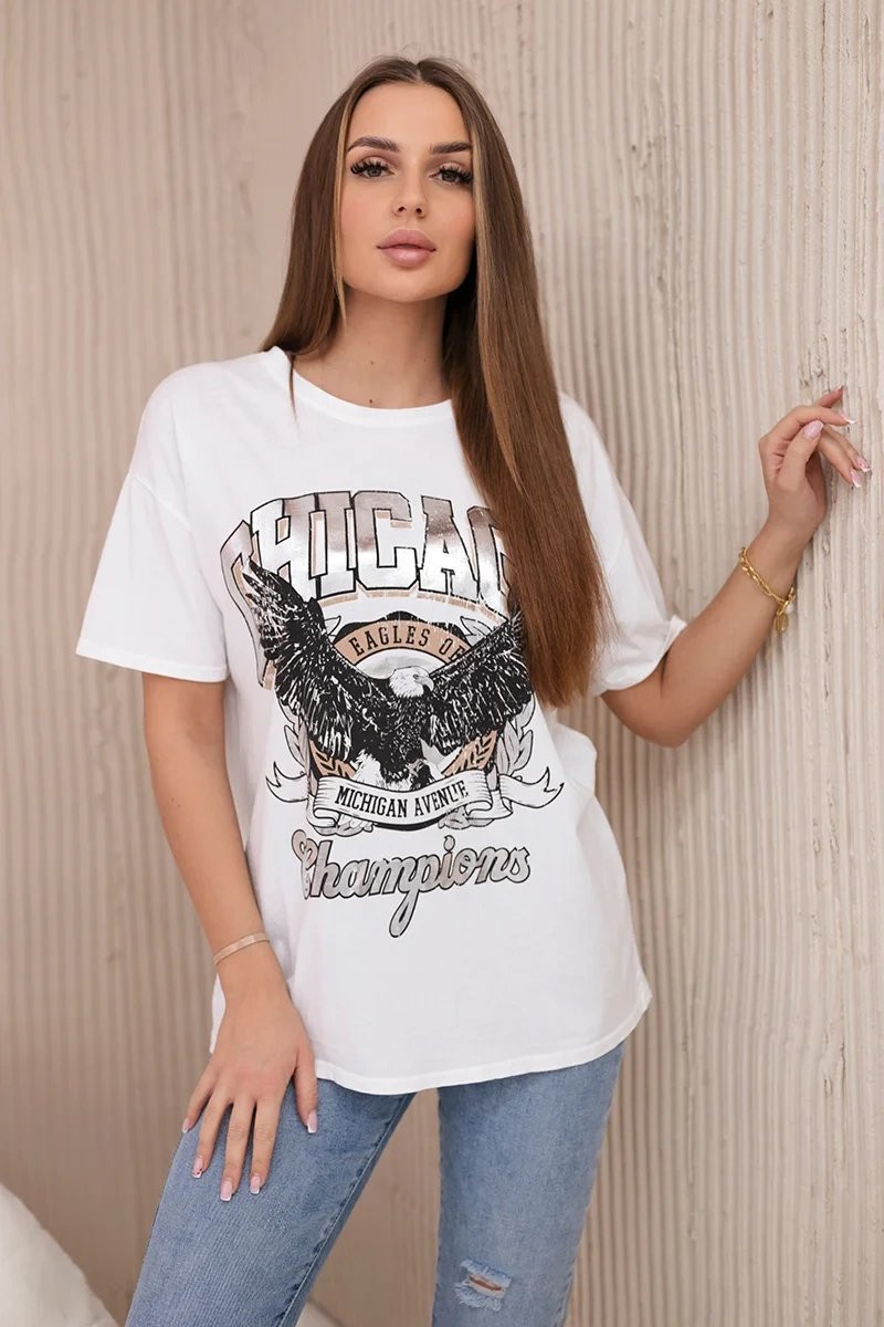 Blůza z česané bavlny Chicago Eagles bílá+stříbrná