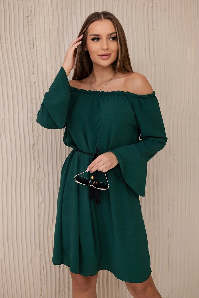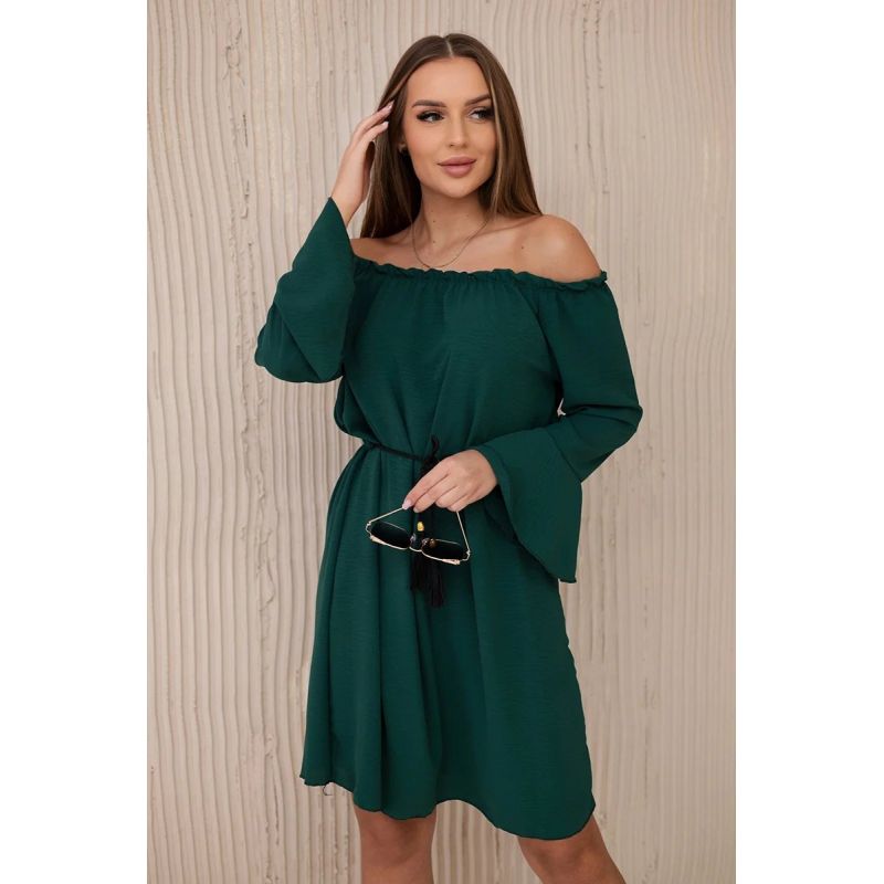 Šaty zavazované v pase na šňůrku jsou módním a praktickým prvkem oděvu, který zvýrazní postavu a dodá šatům jedinečný charakter. Stahovací šňůrka v pase umožňuje upravit obvod, což umožňuje přizpůsobit šaty vašim individuálním preferencím a zvýrazňuje pas, dodává celému stylingu na ženskosti a eleganci. Jde o pohodlnou a univerzální variantu pro různé příležitosti, která zároveň zajišťuje volnost pohybu a komfort nošení. Velikost je univerzální a bude vhodná pro ženy, které nosí velikost S, M nebo L.
