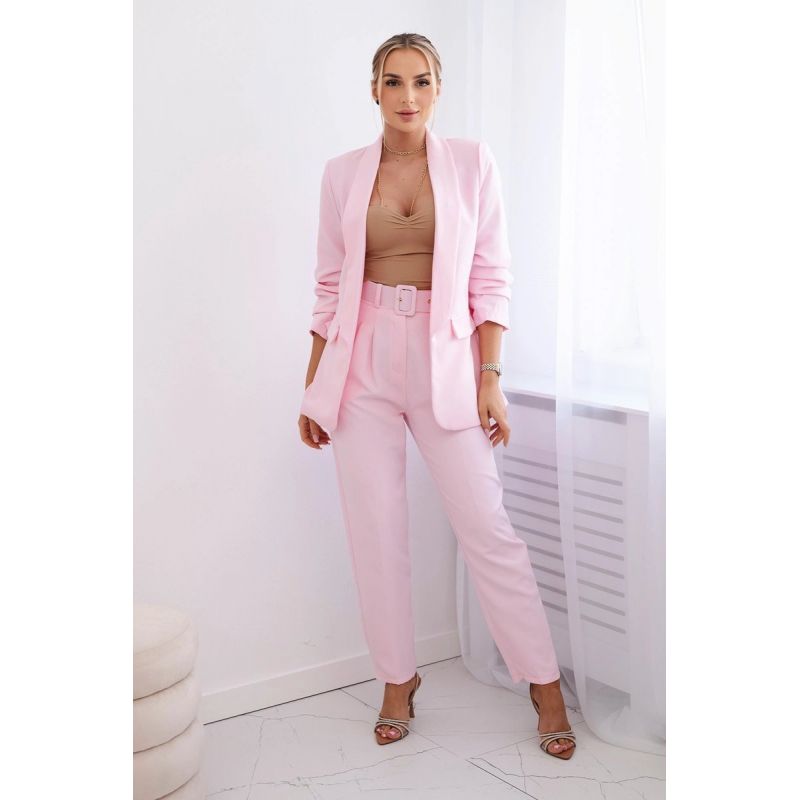 Představujeme Vám elegantní set bundy a kalhot. Bunda bez zapínání s předními klopami. Bunda má podšívku. Kalhoty s kapsami a páskem. V zadní části nohavic je všitá gumička. Velmi módní a stylový set. Sada je vyrobena z vysoce kvalitního materiálu. Velikost je univerzální a bude vhodná pro dámy ve velikosti S, M nebo L.