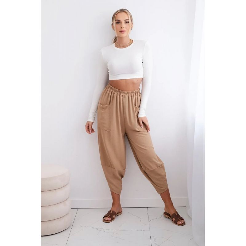 Široké nohavice s kapsami jsou praktickou a stylovou volbou, která kombinuje pohodlí a módní design. Tyto kalhoty jsou vyrobeny z vysoce kvalitních materiálů a pohodlně se nosí po celý den. Jejich charakteristickým znakem jsou široké nohy, které dodávají celému stylingu volnost a lehkost. Kapsy umístěné v přední části kalhot navíc zvyšují praktičnost a funkčnost. Tyto kalhoty jsou ideální pro různé příležitosti, od neformálních výletů až po formálnější jednání, budete se cítit pohodlně a zároveň stylově. Velikost je univerzální a bude vhodná pro ženy, které nosí velikost S, M nebo L.