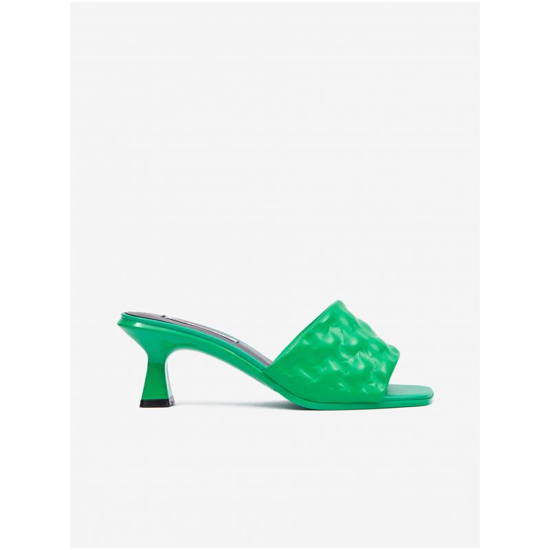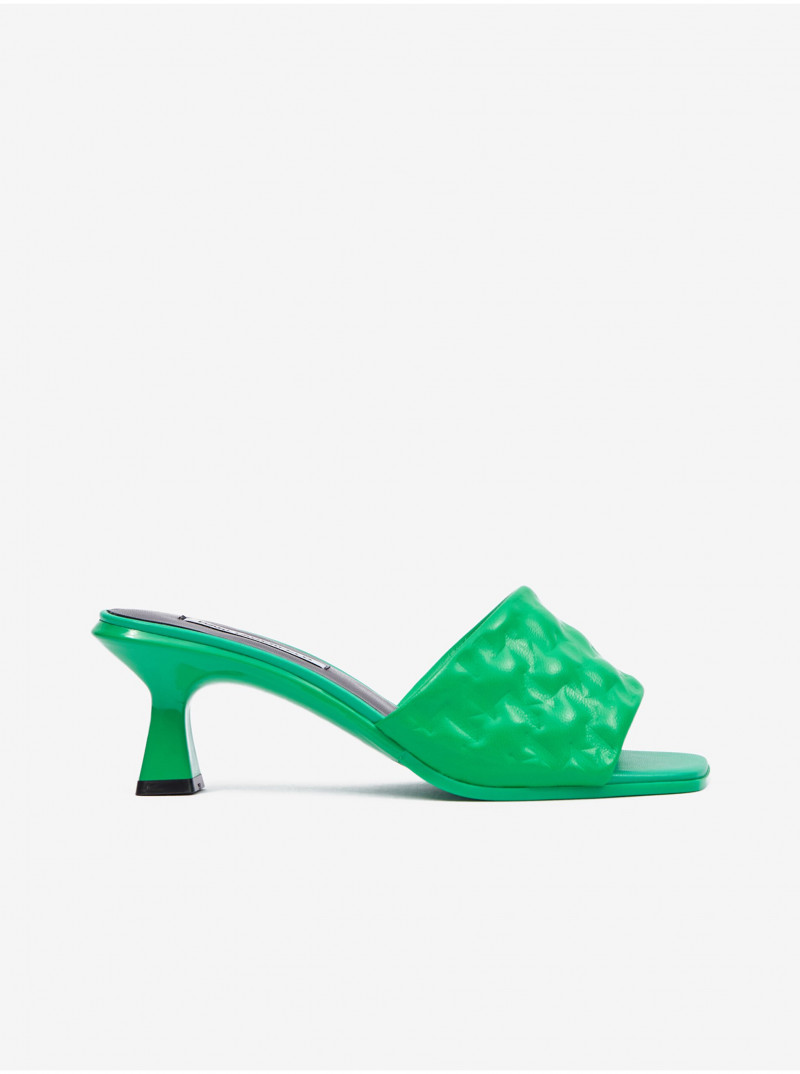 Zelené dámské kožené pantofle KARL LAGERFELD Panache II Padded - Dámské