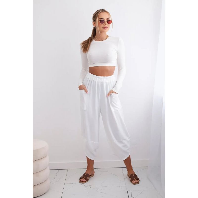 Široké nohavice s kapsami jsou praktickou a stylovou volbou, která kombinuje pohodlí a módní design. Tyto kalhoty jsou vyrobeny z vysoce kvalitních materiálů a pohodlně se nosí po celý den. Jejich charakteristickým znakem jsou široké nohy, které dodávají celému stylingu volnost a lehkost. Kapsy umístěné v přední části kalhot navíc zvyšují praktičnost a funkčnost. Tyto kalhoty jsou ideální pro různé příležitosti, od neformálních výletů až po formálnější jednání, budete se cítit pohodlně a zároveň stylově. Velikost je univerzální a bude vhodná pro ženy, které nosí velikost S, M nebo L.