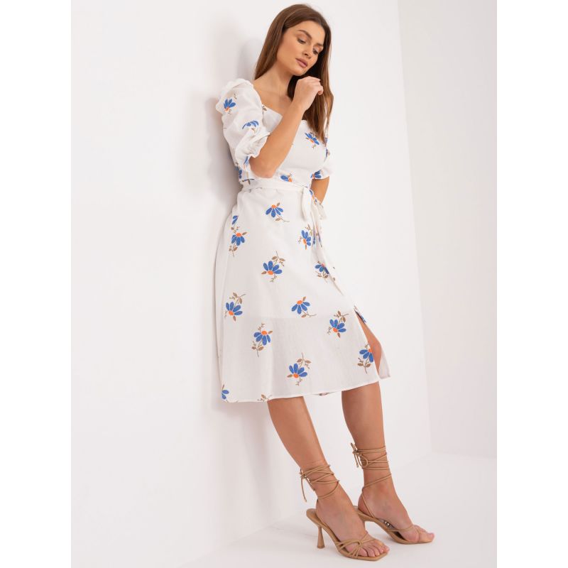 Ecru-modré květinové šaty s rozparkem