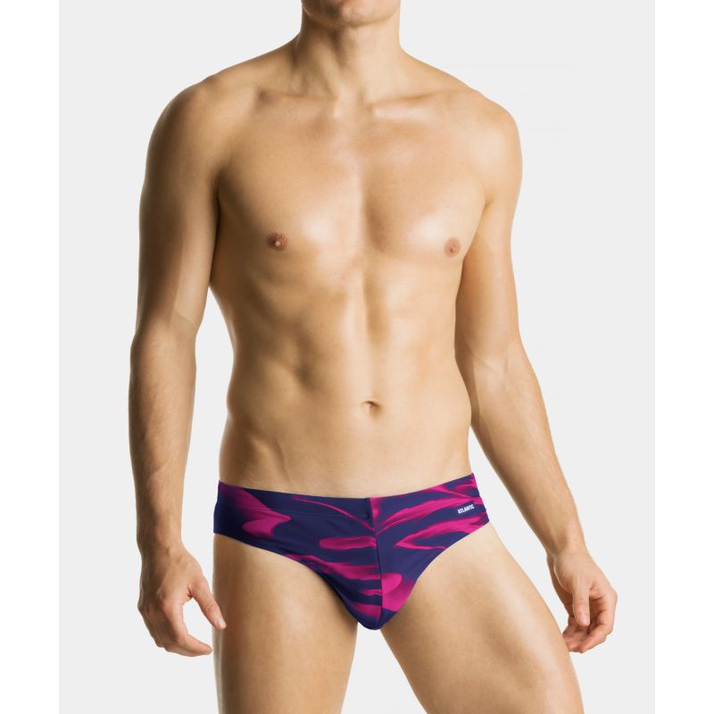 Nechte se ohromit plavkovými slipy s originálním designem, kde se v podobě plamenů prolínají modré a růžové barvy. PLavky sportovního střihu mají poměrně vykrojené boky a nízký pas, který lze regulovat vnitřní šňůrkou. Uvnitř plavek je další podšívka. Plavky poskytují nejvyšší úroveň pohodlí a jsou vyrobeny z příjemného polyamidu a pružného elastanu. Látka rychle schne, neztrácí barvy ani tvar, nemačká se a je odolná vůči slunečnímu záření a časem neztrácí své vlastnosti.