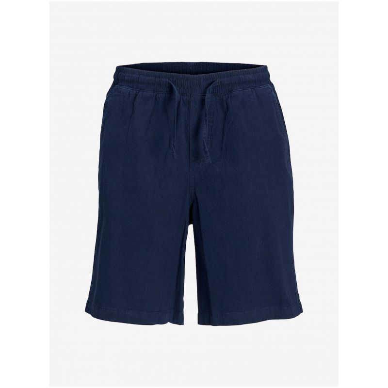 Tmavě modré pánské kraťasy s příměsí lnu Jack & Jones Karl - Pánské