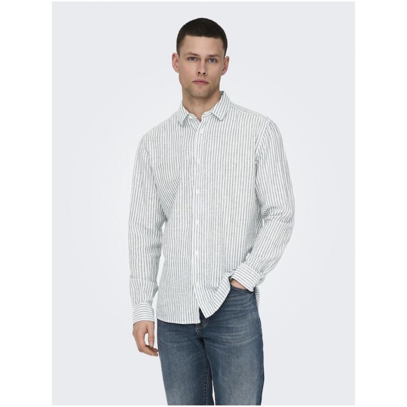 Bílo-zelená pánská pruhovaná košile s příměsí lnu ONLY & SONS Ca - Pánské