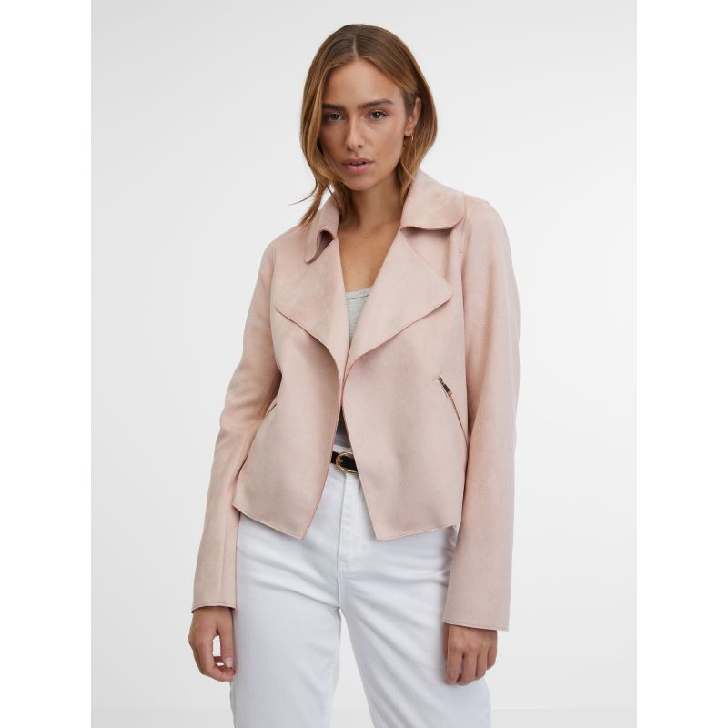 Orsay Světle růžová dámská bunda v semišové úpravě - Dámské