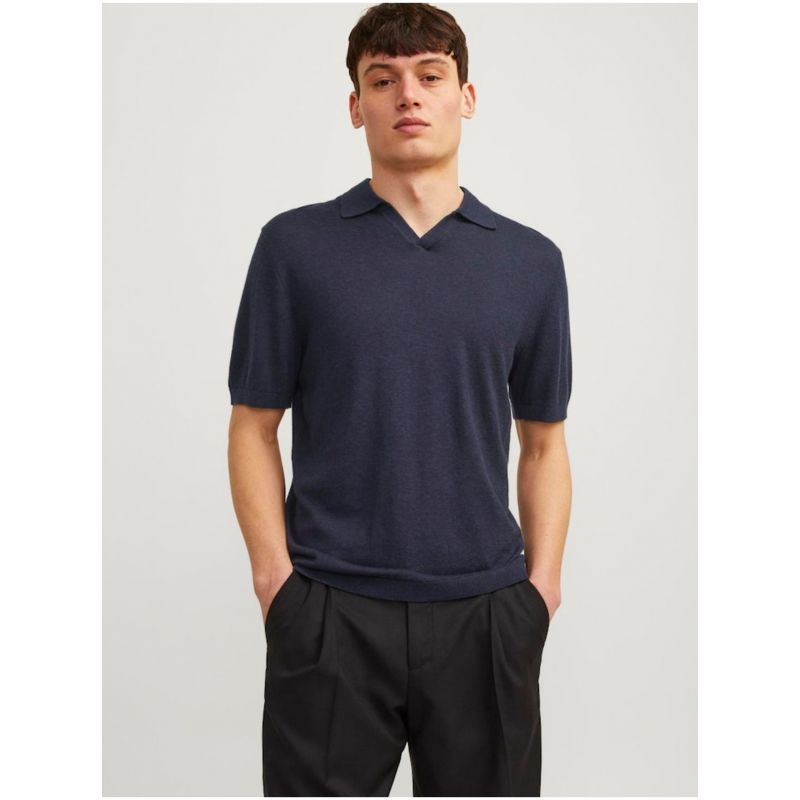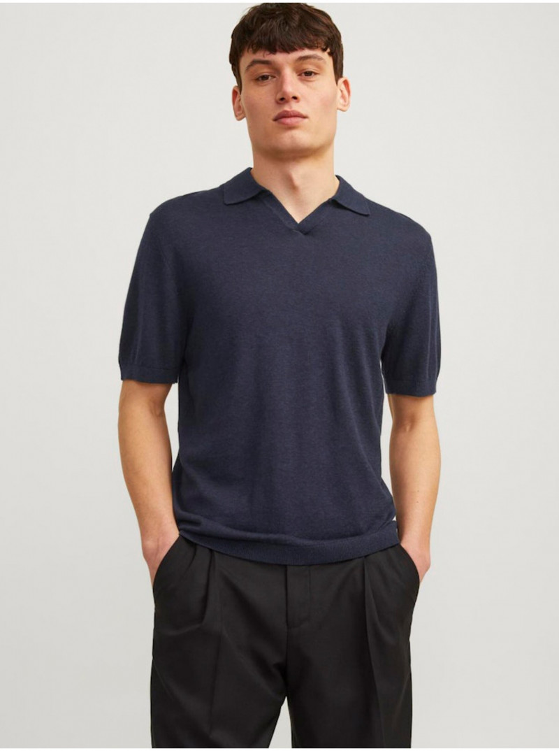 Tmavě modré pánské polo tričko s příměsí lnu Jack & Jones Cigor - Pánské