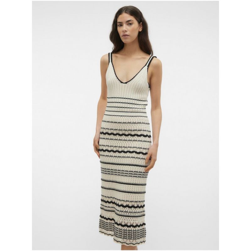 Černo-krémové dámské pruhované midi šaty Vero Moda Minou - Dámské