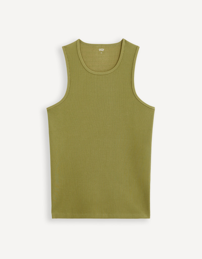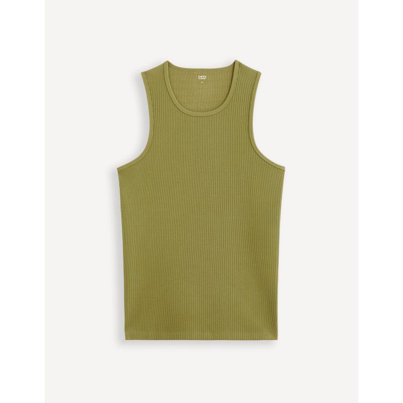 Model: Gedabo Barva: khaki Střih: regular fit Výstřih: kulatý Rukáv: bez rukávů Vlastnosti materiálu: elastický, prodyšný Materiál: 73 % bavlna, 27 % elastan