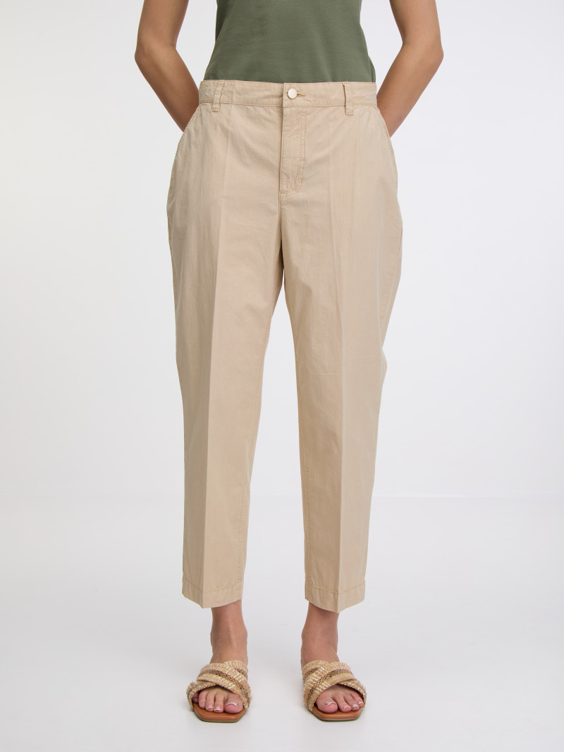 Barva: béžová Střih: chino Výška pasu: středně vysoký pas Délka: zkrácená Zapínání: zip a knoflík Materiál: 100 % bavlna