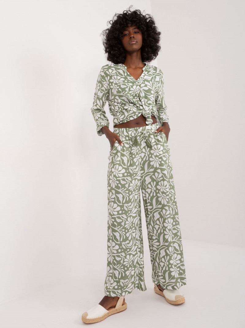Khaki-bílé široké kalhoty v letních vzorech SUBLEVEL